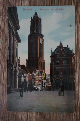 Titel: Utrecht Visch markt met Stadhuis