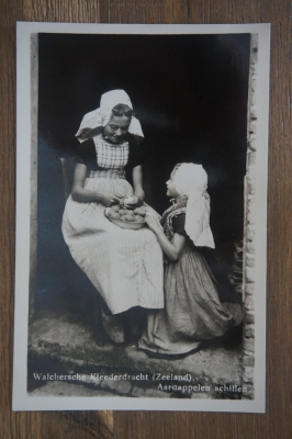 Titel: Walcheren Kleederdracht Aardappelen schillen